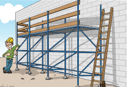 Ik moet werken op een steiger, maar ik zie dat er geen leuningen aanwezig zijn. Wat doe ik?