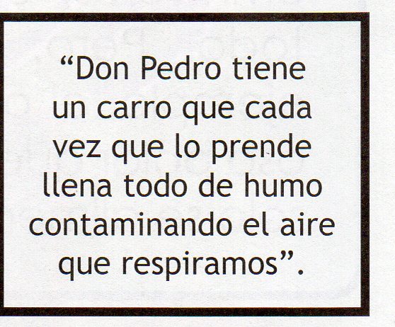 PRUEBA TERCEROOnline version Prueba de nivel by juliocesar pedraza ayala 1 Lee el texto de la imagen. El texto se complementaría con una imagen que muestre cada una de las especies de oso mencionadas y el tipo de alimento, ya que de esta manera a b c 2 Te han presentado la secuencia que aparece en la imagen. Si te piden ponerle un título a la secuencia, el más apropiado sería a b c 3 Pablo tiene como tarea, escoger un objeto que tenga cuatro lados iguales y dibujarlo en tres tamaños diferentes. La tarea que cumple con los requerimientos es a b c 4 Santiago tiene en su habitación una colección de 5 decenas de aviones y 7 unidades de helicópteros. ¿Cuántos elementos conforman la colección de Santiago? . a 57 b 12 c 75 5 Para una campaña sobre el cuidado de los recursos naturales, se debe escoger una situación en la que estos se vean afectados. de los siguientes ejemplos, la situación más apropiada para la campaña sería a b c 6 Jaime presenta en una exposición el siguiente plano de su casa. Su profesora indica que uno de los lugares allí señalados No pertenece al espacio dibujado en el plano. Ese lugar es a El baño, pues es importante que siempre haya uno en casa. b El salón, pues este pertenece al plano de un colegio. c La cocina, pues este espacio solo existe en los restaurantes. 7 Juana tiene los elementos que aparecen en la imagen. Para clasificarlos, ella ha decidido hacerlo de acuerdo con su textura. La tabla que representa el criterio elegido por Juana es a b c 8 Se realizó una encuesta en el colegio para conocer el color favorito de los niños de primaria. Los resultados se muestran en la siguiente tabla a A más niños les gusta el color verde que el rojo. b A menos niños les gusta el color azul que el amarillo. c A la misma cantidad de niños les gusta el color azul y el rojo. 9 Paola quiere saber cuánta agua cabe dentro de una tina y ha pensado que para obtener esa medida puede usar dos elementos como se muestra en la imagen. De los dos elementos pensados por Paola se puede afirmar que es más apropiado usar la taza porque con ella a Se tardará más tiempo en sacar el agua que con la cuchara. b Se obtendrá una medida más precisa que con la cuchara. c Se podrá saber también cuánta agua le cabe a la cuchara. 10 Sharon le cuenta a su compañero que ella y su familia son gitanos y que algunas de las características más importantes de sus comunidad son la música y la danza, ya que gracias a ellas han obtenido reconocimiento mundial por su inmenso colorido y su desbordante alegría. Luego de escucharla, uno de sus compañeros afirma que ser gitano es lo mismo que ser indígena, lo cual es INCORRECTO ya que a b c 11 En el centro de una ciudad han construido un hermoso edificio. Es un verdadero rascacielos, pue tiene más de 25 pisos. La imagen que muestra el tipo de familia que vivirá en el edificio es a b c 12 Samuel observa en la finca de sus abuelos el siguiente árbol de naranjas. Maravillado por la cantidad de frutas que hay en el árbol, Samuel corre a donde su abuelo y le dice, de manera correcta, que en la finca hay un árbol con a Diez naranjas b Quince naranjas. c Cinco naranjas. 13 El abuelo le pide a Samuel , que después de que baje las naranjas del árbol, las organice en grupos que tengan la misma cantida. Lo que espera ver el abuelo es a b c 14 A unos estudiantes se les preguntó ¿cuántos hermanos tienen? sus respuesta fueron representadas en la siguiente gráfica de barras a b c 15 Jairo es el policía del barrio Los Cerezos. Para los habitantes del lugar, el rol que desempeña Jairo es muy importante puesto que a Es el encargado de celebrar la misa en la iglesia. b Tiene a su cargo dar la clase de educación física. c Representa la autoridad y les brinda seguridad. 16 Observa la siguiente imagen. Una semejanza entre los grupos que se observan en las imágenes podría ser que ambos a Practican deportes de alto riesgo. b Prestan un servicio a la comunidad. c Tienen uniformes del mismo color. 17 Camila lee la siguiente lista de palabras a 5--7--1--3--9--2--6--4--8 b 9--2--6--4--8--7--1--3--5 c 6--4--8--2--9--7--3--5--1 18 Es correcto afirmar que el semáforo es un objeto artificial, ya que a Surgió de la naturaleza. b Es creación del hombre. c Su luz ilumina las calles. 19 En un paseo por la ciudad, Camila observa y cuenta los carros y semáforos que ve. Luego, los representa con el dibujo que aparece en la imagen. De acuerdo con la cantidad de elementos que observó Camila, sería correcto afirmar que a Hay tantos semáforos como carros. b Hay más semáforos que carros. c Hay menos semáforos que carros. 20 De las siguientes representaciones, la que corresponde con la cantidad de elementos observados por Camila es a Carros = 6 y Semáforos = 6 b Carros = 7 y Semáforos = 7 c Carros = 5 y Semáforos = 4 Explicación 1 Muy bien 2 Muy bien 3 Muy bien 4 Muy bien 5 Muy bien 6 Muy bien 7 Muy bien 8 Muy bien 9 Muy bien 10 Muy bien 11 Muy bien 12 Muy bien 13 Muy bien 14 Muy bien 15 Muy bien 16 Muy bien 17 Muy bien 18 Muy bien 19 Muy bien 20 Muy bien