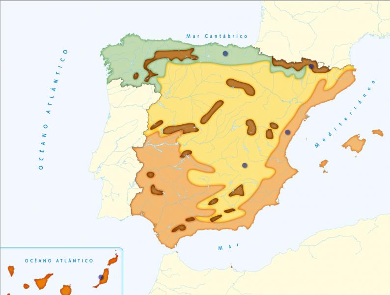 MAPA DE ESPAÑAOnline version Es un mapa donde deberás decir donde está cada zona climática. by Sara García 1 Mediterráneo continental 2 Mediterráneo 3 Montaña 4 Oceánico 5 Subtropical