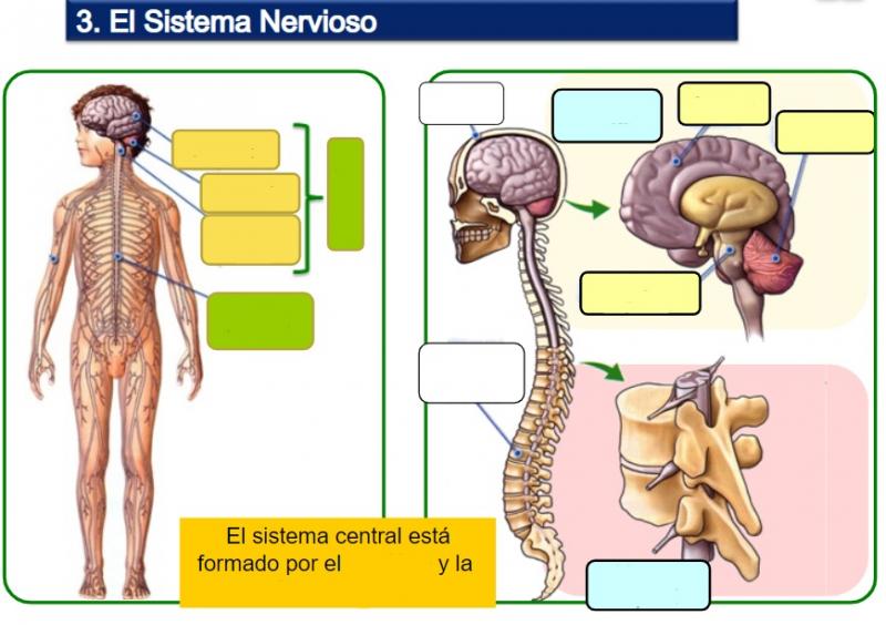 Sistema nervioso Online version Completa la imagen 2 by Music Lab 1 Cerebro 2 Cerebelo 3 Bulbo raquídeo 4 Médula espinal 5 Encéfalo 6 Cráneo 7 Cerebro D 8 Cerebelo D 9 Bulbo raquídeo D 10 Columna vertebral 11 Médula espinal D