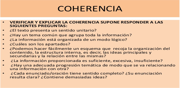 Todo texto debe poseer coherencia, de modo que lo que se expone en él, pueda ser comprendido por el receptor.