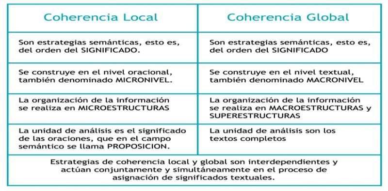 La coherencia consiste en la expresión de la organización a nivel mental que todo texto posee.