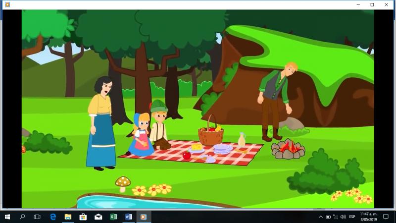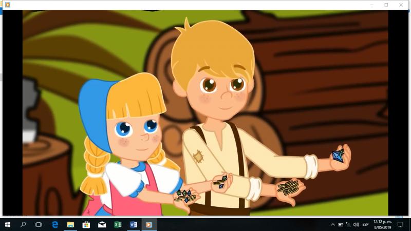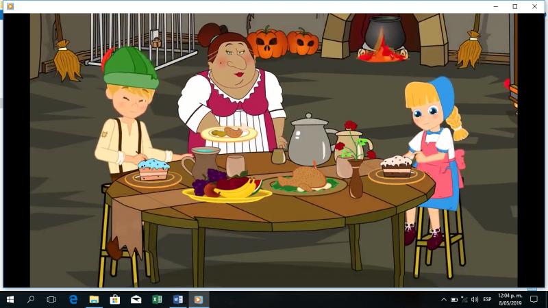 EVALUACIÓN BIMESTRAL 2 PERIODOOnline version Los estudiantes observaran con atención un vídeo del cuento Hansel y Gretel y van a responder las siguientes preguntas sobre el cuento. by Georgina Arango Medina 1 ¿Quiénes conforman la familia del cuento? a La bruja, Hansel y Gretel b El papá, la madrastra y la bruja c El papá, Hasel, Gretel y la madrastra d Hansel y Gretel y los animales del bosque 2 ¿Cómo se llaman los niños del cuento? a Hansel y Damián b Hansel y Gretell c Maria y hansel d Gretel y Damián 3 ¿Qué figura geométrica tienen el techo de la casa de Hansel y Gretel? a Circular b Rectangular c Triangulo d Cuadrado 4 ¿Cómo era la madrastra con los niños? a Cariñosa b Malvada c Alegre d Triste 5 Que hizo Hansel cuando Gretel lloraba? 6 ¿Qué hizo Hansel cuando Gretel lloraba? a La consolaba b Lloraba con ella c No le prestaba atención d La regañaba 7 ¿Que regó Hansel en el camino para regresar a casa? a Fríjol b Arena c Piedras d Pan 8 ¿Cuantos platos hay sobre el mantel? 9 ¿Cuantos platos hay sobre el mantel? a 4 platos b 2 platos c 6 platos d 3 platos 10 ¿Cuantas Flores hay en el paisaje? a 6 flores b 2 flores c 9 flores d 4 flores 11 ¿Qué animales salvajes escucharon Hansel Gretel en el bosque en la noche? a Leones b Lobos c Grillos d Pájaros 12 ¿Qué vocales tiene el nombre de Hansel? a Tiene a- o b Tiene a - e c Tiene o- i d Tiene a - o 13 ¿Cuántos días espero la madrastra para dejarlos nuevamente en el bosque? a 5 díás b 3 días c 6 días d 2 días 14 ¿De qué color era el pájaro que estaba en el árbol? a Verde b Amarillo c Rojo d Blanco 15 ¿De qué estaba construida la casa de la bruja? a Paja b Madera c Algodón d Dulces 16 ¿Que quería hacer la bruja con Hansel? a Convertirlo en pájaro b Engordarlo y comerlo c cuidarlo como un hijo d Convertirlo en dukce 17 ¿ Qué figura geométrica tienen las ventanas de la casa de la bruja? a Triángulos y retangulos b Rectángulos y óvalos c Círculos y Cuadrados d Triángulos y lineas 18 ¿Cuantas patas tiene la mesa de la bruja? a 3 patas b 4 patas c No tiene patas d 8 patas 19 ¿Cómo se sitió el papá de Hnsel y Gretel al verlos regresar de nuevo ? a Tristeza b Alegría c Enojo d Susto 20 ¿Cuántas monedas tenia Gretel en las manos cuando se las mostró al papá? a 2 monedas b 3 monedas c 6 monedas d Nada de monedas 21 ¿Qué animal le ayudo a Hansel Y Gretel a pasar el río? a Una Serpiente b Un Cisne c Una Vaca d Un águila 22 ¿Qué figura geométrica tiene la Jaula donde estaba Hansel? a Circular b Rectangular c Triangulo d Cuadrada