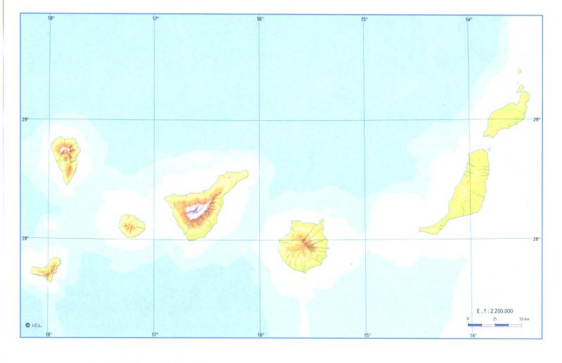 Mapa físico Islas CanariasOnline version Este mapa contiene formas del relieve de las Islas Canarias by paula camara pelles 1 Océano Atlántico 2 Lanzarote 3 Fuerteventura 4 Gran Canaria 5 Tenerife 6 Teide 7 La Gomera 8 El Hierro 9 Caldera de Taburiente 10 La Palma