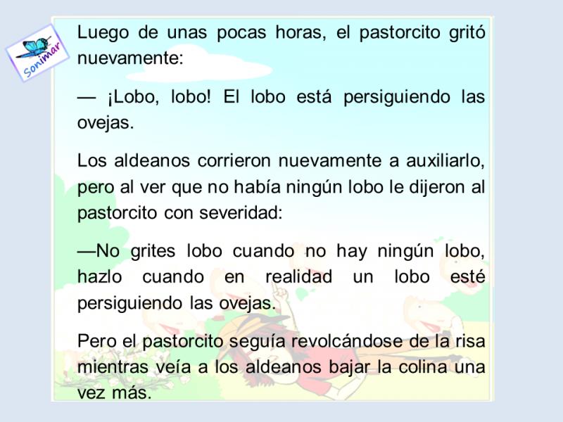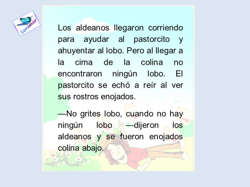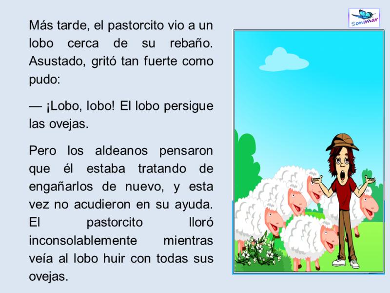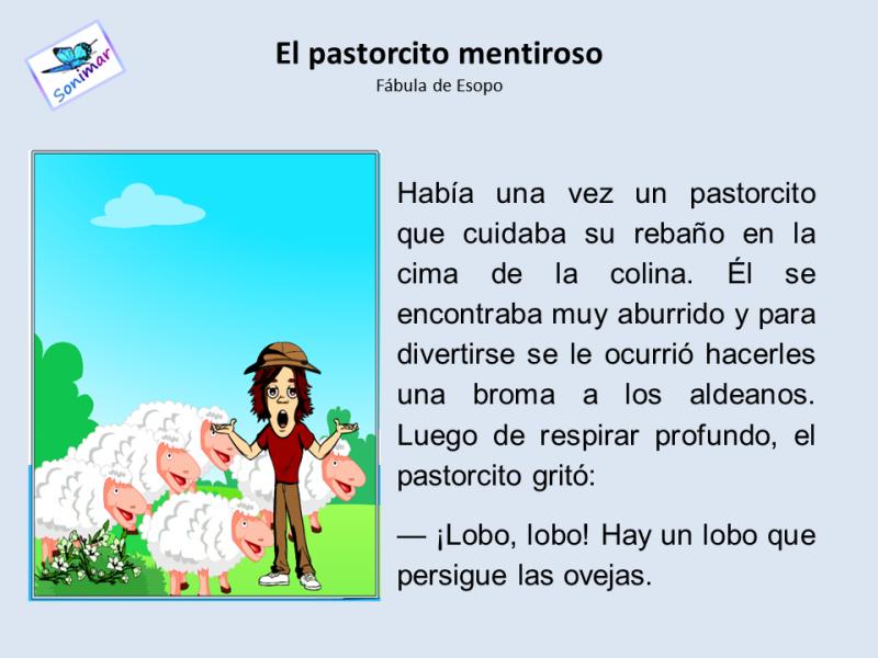 EL PASTORCITO MENTIROSOOnline version Estrategia Didáctica Para Mejorar La Comprensión Lectora Implementando Un Objeto Virtual De Aprendizaje (Ova), Con Los Estudiantes Del Grado Tercero De Primaria. by Sonia Medina 1 EL PASTORCITO MENTIROSO 2 EL PASTORCITO MENTIROSO 3 EL PASTORCITO MENTIROSO 4 EL PASTORCITO MENTIROSO 5 EL PASTORCITO MENTIROSO 6 EL PASTORCITO MENTIROSO