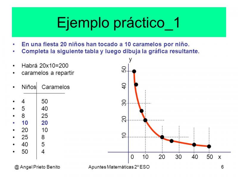 PROPORCIONALIDAD INVERSAOnline version Conoce las formas de solucionar un ejercicio de proporcionalidad inversa by Ana Marín 1 PROPORCIONALIDAD INVERSA PROPORCIONALIDAD INVERSA 2 Definición •Dos magnitudes A y B son inversamente proporcionales si el aumento de A produce la disminución de B en la misma proporción (y al revés). Es decir si tenemos el doble de A tendremos la mitad de B, si pasamos a un tercio de A en B tendremos el triple, etc. 3 Definición •Cuando dos magnitudes se relacionan de forma inversamente proporcional se cumple que el producto entre los valores de A entre B es constante, ya que si A pasa a ser el doble (multiplicamos por dos el valor de A) también tendremos la mitad de B (dividimos por dos el valor de B) y por tanto el producto de ambos es el mismo. A B a b a b a b k · = 1 · 1 = 2 · 2 = .... = n · n = El valor de la constante k se denomina constante de proporcionalidad inversa. 4 Constante de proporcionalidad Constante de proporcionalidad •Dos magnitudes son inversamente proporcionales si al multiplicar (o dividir) una de ellas por un número, la otra queda dividida (o multiplicada) por el mismo número. Si a un valor m1 de la primera magnitud le corresponde un valor m2 de la segunda magnitud, se puede comprobar que el producto de estos dos valores es siempre constante. A este producto se le llama constante de proporcionalidad inversa. 5 Regla de tres inversa •Una forma muy fácil de resolver una actividad de proporcionalidad inversa es un procedimiento llamado regla de tres. Consiste en aprovechar la constante de proporcionalidad inversa para calcular el cuarto término. 6 Regla de tres inversa 7 Reducción a la unidad Reducción a la unidad•Sin embargo la regla de tres se convierte en un procedimiento mecánico, que aunque permite resolver de forma fácil cualquier actividad, no se razona de forma conveniente su resolución. Otro procedimiento que podemos llamar de reducción a la unidad, consiste en calcular el valor de la segunda magnitud correspondiente a la unidad de la primera. Este valor es el que se ha llamado anteriormente constante de proporcionalidad inversa. A partir de aquí es más fácil calcular el valor final de la segunda magnitud. 8 Reducción a la unidad 9 Ejercicios •Un coche circulando a 90 km/h ha tardado 12 horas en realizar un viaje. ¿Cuánto tiempo tardará en el mismo trayecto a una velocidad de 80 km/h? •6 fotocopiadoras tardan 6 horas en realizar un gran número de copias, ¿cuánto tiempo tardarían 4 fotocopiadoras en realizar el mismo trabajo? •Al repartir una cantidad de euros entre 7 personas cada una recibe 12 euros. ¿Cuánto recibirían si el reparto se hiciera entre 6 personas? 10 PROPORCIONALIDAD INVERSA