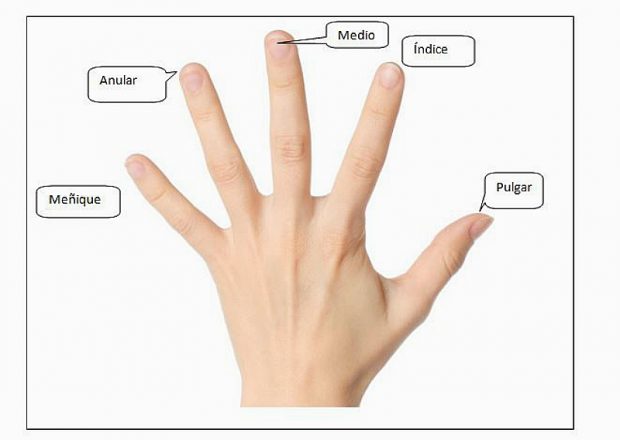 Los dedos de la manoOnline version Identificar el nombre de ls dedos de la mano mediante una comparación con la familia. by Karen Reina 1 La familia dedo 2 Dedos de la mano Pasos para identificar los dedos de la manoEl pulgar y el meñique son fáciles de reconocer, siendo el pulgar el dedo más grande y el meñique el más pequeño.A continuación del pulgar viene el dedo índice que es el que solemos usar para indicar.Justo al lado del índice viene el dedo medio o corazón, no tiene pérdida esa es justa su ubicación en el orden de los dedos de la mano.Después viene el dedo anularEl dedo pequeño es el último el meñique. 3 Dedo pulgar 4 Dedo índice 5 Dedo medio 6 Dedo anular 7 Dedo meñique 8 Dedos de la mano 9 Esto ha sido todo