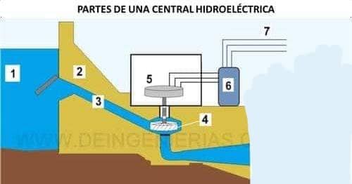 Central hidroelectrica Online version Central hidroelectrica by Andres Rodriguez 1 embalse 2 represa 3 tuberia forzada 4 turbina 5 generador eletrico 6 tranformador 7 red eletrica 8 red eletrica