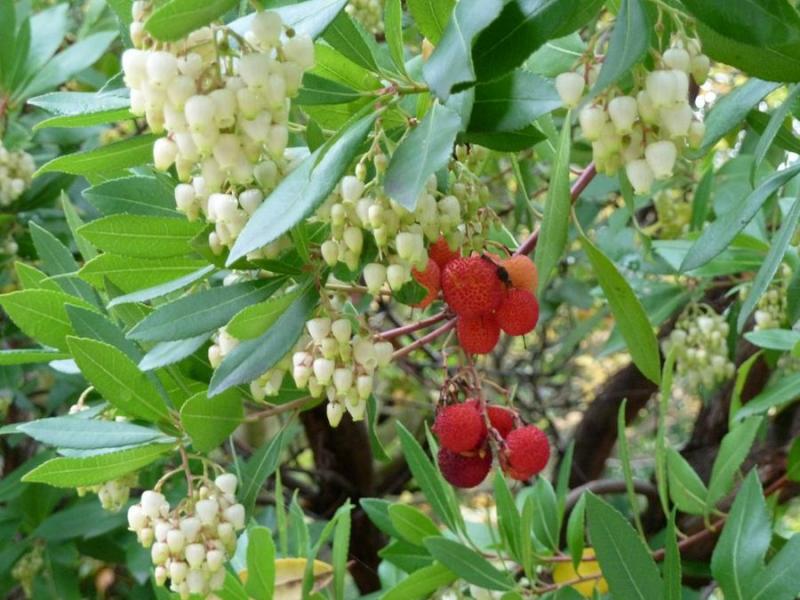 Las hojas con sus flores y frutos