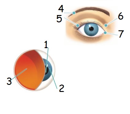 SightOnline version Sight Game by Jesús Arroyo 1 Pupil 2 Retina 3 Iris 4 Eyebrow 5 Eyelashes 6 Lacrimal gland 7 Eyelids