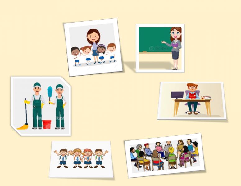 La comunidad escolarOnline version Identifica a los miembros que conforman la comunidad educativa. by Yuly Méndez Chuquimajo 1 Director 2 Profesores 3 Estudiantes 4 Auxiliares 5 Padres de familia 6 Personal de limpieza