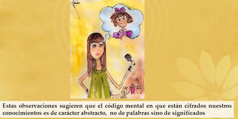 cogniciónOnline version Actividad de representación mental del conocimiento by Angie Guerrero 1 La representación mental del conocimiento consiste en a La capacidad que tenemos para imaginar b La capacidad que tenemos de lo que imaginamos y observamos todo el tiempo c la capacidad que tenemos para hacernos una imagen mental de hechos d capacidad que tenemos para hacernos una imagen mental de hechos u objetos que ya hemos identificado anteriormente 2 La Teoría de las proposiciones refiere a a Que las representaciones mentales se almacenan en forma de figuras e imágenes b Que las representaciones mentales se almacenan en forma de símbolos y no de imágenes c Que las representaciones mentales se almacenan en forma de significado y no de imágenes d Que las representaciones mentales se almacenan en forma de imágenes y no en significados 3 Que tipos de estructura del conocimiento se relacionan con la representación mental a El conocimiento empírico y el científico b El conocimiento declarativo y el empírico c El conocimiento declarativo y el procedimental d El conocimiento científico y declarativo 4 La Imaginería mental en algunos casos esta se obtiene a través de a La imaginación b Los sentidos c Todas las anteriores d Ninguna de las anteriores 5 Esta imagen hace referencia a a Teoría de las proposiciones b Imaginería mental c Teoría del código dual d Representación mental del conocimiento 6 Esta imagen hace referencia a a Representación mental del conocimiento b Teoría de las proposiciones c Imaginería mental d Teoría del código dual Explicación 1 capacidad que tenemos para hacernos una imagen mental de hechos u objetos que ya hemos identificado anteriormente 2 Que las representaciones mentales se almacenan en forma de significado y no de imágenes 3 El conocimiento declarativo y el procedimental 4 Los sentidos 5 Representación mental del conocimiento 6 Teoría de las proposiciones