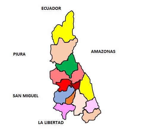 Provincias de CajamarcaOnline version Identifica las provincias de la región Cajamarca en el mapa by Alexander Carrasco Vega 1 San Ignacio 2 Jaén 3 Cutervo 4 Chota 5 Santa Cruz 6 Hualgayoc 7 Celendín 8 San Miguel 9 San Pablo 10 Contumazá 11 Cajamarca 12 San Marcos 13 Cajabamba