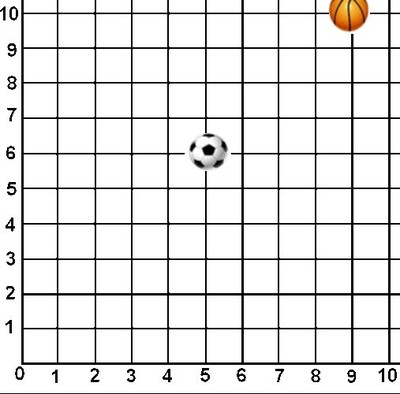 ¿En qué coordenadas se encuentra los balones de básquet y fútbol ? Marque dos opciones.