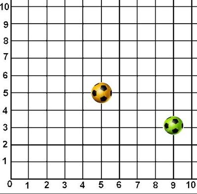 Observe y seleccione las coordenadas correctas donde se encuentren los diferentes balones de colores. Marque dos opciones.