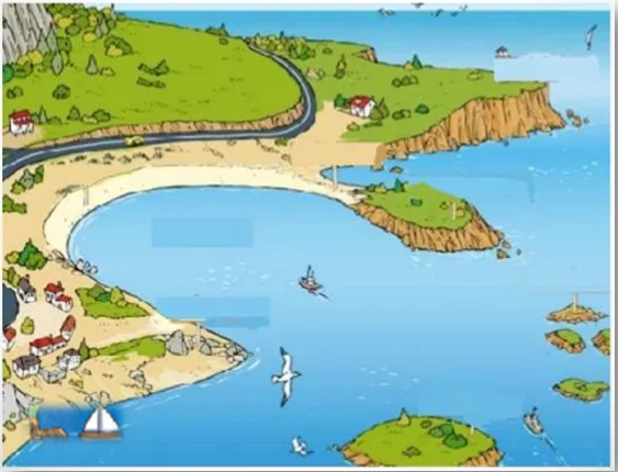 Relieve CosteroOnline version Localiza las características del relieve costero. by Veronica Viviana Espinoza Pineda 1 Playa 2 Península 3 Istmo 4 Acantilado 5 Cabo 6 Golfo 7 Isla 8 Archipiélago 9 Bahía