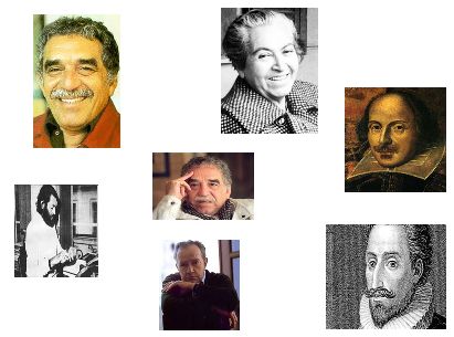 autores Online version debes identificar cada autor según tus conocimientos con su nombre y obra by Robertina Benitez Tuberquia 1 G. G. MÁRQUEZ"LA HOJARASCA" 2 GABRIELA MISTRAL"POEMAS" 3 M.DE CERVANTES SAAVEDRA"EL QUIJOTE" 4 WILLIAM SHAKESPEARE"OTELO" 5 JUAN RULFO"EL LLANO EN LLAMAS 6 MARIO BENEDETTI "POEMAS DE LA OFICINA" 7 MÁRQUEZ "NOTICIA DE UN SECUESTRO"