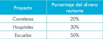 En la tesorería de un municipio destinan$1.000.000.000 del presupuesto para la adecuación del acueducto. El resto del presupuesto, se divide para otros proyectos como se indica en la tabla. Si el presupuesto del municipio es de $6.000.000.000 anuales, ¿cuál de los siguientes procedimientos permite calcular el dinero destinado para hospitales?