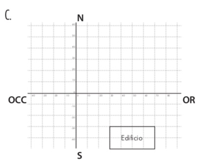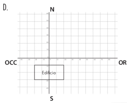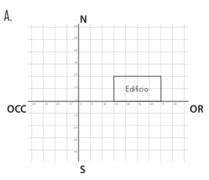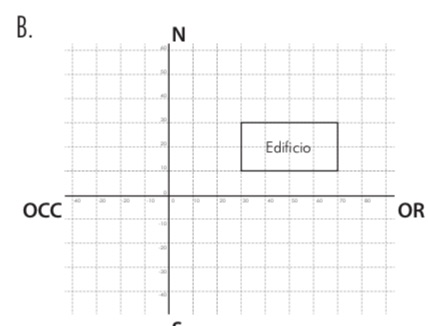 En 1974, se tuvo que mover un edificio para poder construir la "Avenida Saber" que atraviesa la ciudad de orienta a occidente. Se sabe que el edificio se trasladó 30 metros al norte de su lugar original, en la figura se muestra la ubicación actual del edificio. ¿Cuál era la ubicación del edificio en 1974?