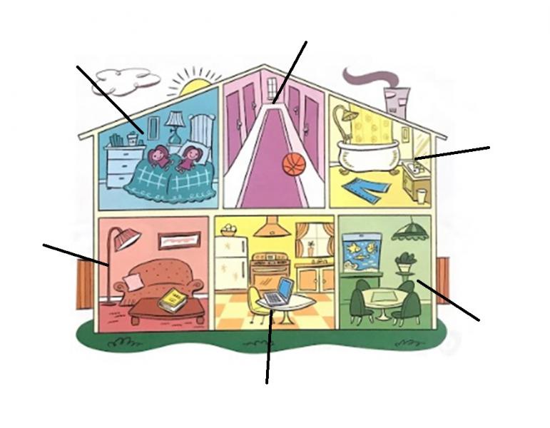 Parts of the houseOnline version Identify the rooms of the house by antonio ortiz 1 living room 2 kitchen 3 hall 4 bathroom 5 dining room 6 bedroom