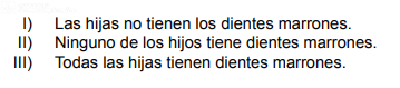 La figura indica la transmisión de un carácter (individuos en negro) en una familia (los hombres se representan con un cuadrado y las mujeres con un círculo) [Ver imagen]. De esta genealogía, se puede afirmar que // I) se trata de un carácter dominante - II) se trata de un carácter recesivo - III) el genotipo más probable de los hombres de la primera generación es homocigoto dominante.