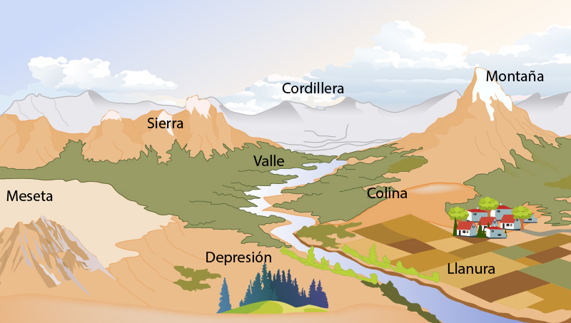 RELIEVE DE MEXICOOnline version RELIEVE DE MEXICO by YESENIA GUZMAN 1 Es la forma más alta del relieve. Varias montañas crean un sistema montañoso o sierra 2 Es una superficie alta y extensa, con poca pendiente y rodeada por montañas 3 Lugares con poca pendiente que generalmente son atravesados por un río. 4 Terreno plano y extenso con pocos cambios; si está cerca del mar se llama llanura costera 5 es un conjunto de montañas cuyas cumbres presentan una apariencia quebrada o aserrada, forman parte de otro conjunto mayor de montañas, como una cordillera