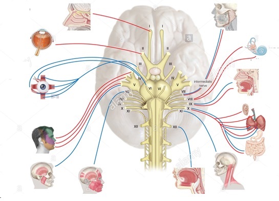 NERVIOS CRANEALES Online version Seleccionamos los nervios craneales que corresponda según el concepto que se presente. by Rolando Escalera Soliz 1 OLFATORIO 2 ÓPTICO 3 MOTOR OCULAR COMÚN 4 PATÉTICO COCLEAR 5 TRIGÉMINO 6 MOTOR OCULAR EXTERNO 7 FACIAL 8 AUDITIVO 9 GLOSOFARÍNGEO 10 VAGO O NEUMOGÁSTRICA 11 ESPINAL 12 HIPLOGLOSO