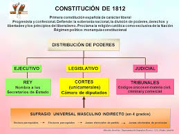Las Cortes de CádizOnline version Cuestionario by Pilar Batalloso Polo 1 Monarquía que gobernaba en España a la llegada de los franceses a Los Austrias b Los Borbones c Los Trastámara 2 Antes de ser Cortes de Cádiz fueron... a Constitución de Cádiz b Cortes Supremas c Junta Central Suprema 3 En las Cortes de Cádiz estaban representados 3 grupos... a Liberales, absolutistas y nobles b Liberales, absolutistas y americanos c Liberales, absolutistas y franceses. 4 Las Cortes de Cádiz elaboraron leyes que eliminaban... a La tortura b La monarquía, la tortura y la Inquisición c La Inquisición, los gremios y los señoríos 5 Las Cortes de Cádiz ... a Declararon la igualdad de los ciudadanos ante la ley b Declararon el derecho de pertenecer a un gremio c Declararon la eliminación de la monarquía 6 Soberanía nacional significa.... a El poder solo pertenece al rey. b El poder reside en los estamentos, que votan en la Asamblea a petición del rey. c El poder reside en la nación y esta lo ejerce a través de sus representantes. 7 La Constitución de Cádiz se aprobó el día... a 9 de marzo de 1812 b 19 de marzo de 1812 c 12 de marzo de 1812 8 ¿Qué tipo de Estado sería España según la Constitución de 1812? a Monarquía parlamentaria b Monarquía absoluta c Monarquía moderada hereditaria 9 Los poderes se dividen en ... a Legislativo, ejecutivo y judicial b Legislativo, ejecutivo y económico c Legislativo, monárquico y ejecutivo 10 El ejecutivo correspondía a.... a Rey b Rey y cortes c Tribunales de justicia. 11 El poder legislativo era ejercido por... a El rey b El rey y las Cortes c Los tribunales de justicia 12 El poder judicial era ejercido por... a El rey b El rey y las Cortes c Los tribunales de justicia Explicación 1 LLegaron a España de la mano de Felipe V 2 Y antes Juntas locales y provinciales 4 Estas leyes suponían el fin del Antiguo Régimen 6 Los representantes se eligen mediante el sufragio.