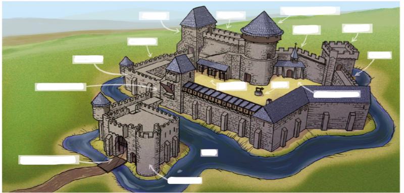 PARTES DEL CASTILLO MEDIEVALOnline version Sitúa correctamente las partes del castillo medieval. by Elianna Gómez 1 PUERTA CON RASTRILLO 2 PUENTE LEVADIZO 3 MURALLA 4 ALMENAS 5 ATALAYA 6 MATACÁN 7 TORRE DEL HOMENAJE 8 CAPILLA 9 TORREÓN 10 ADARVE 11 PATIO DE ARMAS 12 POZO 13 ESTABLOS 14 FOSO 15 BARBACANA