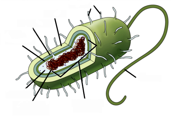 partes de la célula procariotaOnline version colocar el nombre en el lugar que corresponde. by Vale Garo 1 fimbrias 2 capsula 3 pared celular 4 membrana celular 5 membrana celular 6 ribosoma 7 cromosoma (ADN) 8 región del nucleoide 9 flagelo
