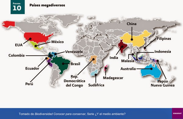 MegadiversidadOnline version Mapa interactivo para valorar los conocimientos de los países megadiversos. by Jonathan Ramirez 1 Posee el mayor número especies de reptiles a nivel mundial 2 País con el segundo arrecife más extenso 3 Es el número uno en diversidad de aves 4 País con el mayor número de especies de cactáceas 5 El oso panda es endémico de este país 6 Es el país con mayor biodiversidad 7 La mayoría de las especies de flora y fauna de este país son endémicas , además es conocido por sus lémures y camaleones 8 País que cuenta con el Parque Nacional más antiguo de África y alberga al okapi y al chimpancé pigmeo 9 Es probablemente el destino megadiverso menos conocido y el único que no dispone de ningún patrimonio de la humanidad y cuenta con una zona conocida como el triángulo de coral 10 Cuenta con dos hotspot