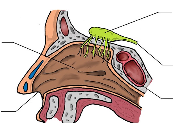 Partes del sentido del olfatoOnline version sentido del olfato by Karen Huertas 1 CAVIDAD NASAL 2 BULBO OLFATORIO 3 FOSAS NASALES 4 NERVIO OLFATORIO 5 MEMBRANA OLFATORIA