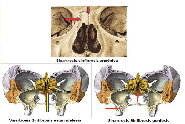 Sinartrosis sinfibrosis dentada:Bordes articulares son dentados como ocurre con las articulaciones de: Fronto-parietal, Bi-parietal y Parieto-occipital.