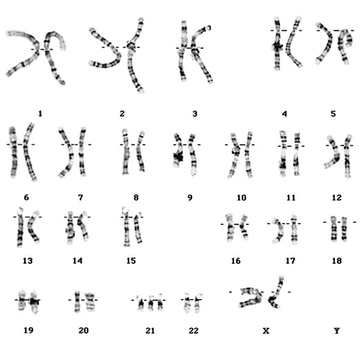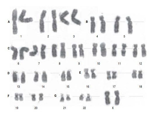 CROMOSOMOPATÍASOnline version Como ya has revisado, las cromosomopatías resultan de una cantidad mayor o menor de material genético y son causa de anomalías congénitas entre 0.7 y 1.5% de los recién nacidos. Las cromosomopatías más comunes son aquéllas que tienen un número anormal de cromosomas, seguidas de las anomalías estructurales. En esta actividad responderás a un pequeño test para poner a prueba tus conocimientos en cromosomopatías, recuerda que puedes consultar el artículo de Esparza-García y colaboradores "Cromosomas, cromosomopatías y su diagnóstico. Rev Mex Pediatr 2017; 84(1):30-39" para asegurar tu éxito en la actividad. ¡Adelante! by JORGE LIMON 1 ¿Cuáles cromosomopatías son las más comunes? a LAS QUE TIENEN NÚMERO DIFERENTE DE NÚCLEOS b LAS QUE TIENEN DIFERENTE NÚMERO DE CROMOSOMAS c LAS DE DIFERENTE NÚMERO DE NUCLEÓLOS d LAS QUE SON ABERRACIONES CROMOSÓMICAS 2 Se llama así a las anomalías en las que sólo tienen un cromosoma de más o de menos. Respuesta escrita 3 Esta técnica permite el estudio de los cromosomas. a CARIORRESIS b CARIOCINESIS c CARIOFORMA d CARIOTIPO 4 ¿Cuál sería el fenotipo de de acuerdo al siguiente cariotipo? a NIÑO b ADULTO c FEMENINO d MASCULINO 5 ¿Cuál es el síndrome esperado en un paciente pediátrico con el siguiente cariotipo? a Down b Klinefelter c Patau d Edwards 6 Es un trastorno cromosómico originado por la presencia de un cromosoma X extra en un paciente con fenotipo masculino. a SÍNDROME DE TURNER b SÍNDROME DE KLINEFELTER c SÍNDROME DE CRI DU CHAT d TRISOMIA 47 7 En esta síndrome se aprecia la monosomía del cromosoma X y afecta a pacientes femeninos cuyo fenotipo es talla baja y disgenesia gonadal. Respuesta escrita 8 En esta trisomía del cromosoma XIII a múltiples malformaciones, como el paladar hendido. a CRI DU CHAT b KLINEFELTER c TURNER d PATAU 9 Es el segundo síndrome más común que afecta el número de autosomas y se debe a la presencia de un cromosoma 18 extra. a SÍNDROME DE ESTOCOLMO b SÍNDROME DE KLINEFELTER c SÍNDROME DE EDWARDS d SÍNDROME DE PATAU 10 En esta anomalía hay eliminación de un segmento del brazo corto del cromosoma 5, y el fenotipo produce un llanto parecido al “maullido de gato” que se debe probablemente a anomalías laríngeas. a TURNER b CRI DU CHAT c PATAU d MAULLISMO ILIMITADO 11 Estos pacientes tienen una trisomía, menciona en cuál cromosoma. Respuesta escrita Explicación 1 Las más comunes son aquéllas que tienen un número anormal de cromosomas, seguidas de las anomalías estructurales 2 Son los ejemplos de ello la trisomía 21 (un cromosoma 21 de más) y el síndrome de Turner o monosomía del X. 3 EXISTEN MUCHAS VARIANTES DE ESTA TÉCNICA PERO EN TODAS SE PUEDE APRECIAR EL NÚMERO DE CROMOSOMAS ASÍ COMO ALTERACIONES ESTRUCTURALES. 4 SI OBSERVASTE BIEN HAY DOS CROMOSOMAS SEXUALES X. 5 Si observaste bien hay una trisomía, es decir tres copias de un cromosoma. 6 Es un defecto en pacientes masculinos en el cromosoma 47 XXY. 7 aquí puede haber pérdida del cromosoma X o Y dejándo sólo al X. 8 . Las características clínicas comunes incluyen: labio/paladar hendido, microftalmia, microcefalia, polidactilia postaxial, malformaciones cardiacas. 9 Se caracteriza (Figura 5) por retraso en el crecimiento intrauterino, dolicocefalia, fisuras palpebrales cortas, micrognatia, pabellones auriculares dismórficos, piel redundante en nuca, malformaciones mayores. 10 Esta anomalía se origina por la eliminación de un segmento del brazo corto del cromosoma 5 en el que el tamaño de la deleción, puede abarcar la totalidad del brazo corto o sólo la región crítica 5p15. 11 Son pacientes con síndrome de Down, que es una trisomía.