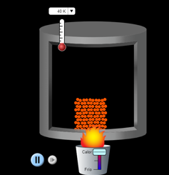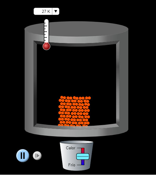 Estados de la materiaOnline version Por medio del siguiente quiz se evaluarán las temáticas de la primera parte del mediador. by Liceth Marín 1 Lo que define a un estado de la materia es: a Lo denso que sea un cuerpo b La disposición y organización de los átomos c La cantidad de masa d La respuesta que dé el cuerpo al someterlo a cierta temperatura 2 Una característica que NO define al estado sólido. a Tiene un volumen definido b Sus partículas están organizadas y vibran muy poco c Tiene una masa variable con el tiempo d Al aumentar la temperatura puede cambiar a otro estado. 3 De acuerdo con la imagen, se puede afirmar que el cuerpo es: a Sólido, ya que sus partículas están juntas b Líquido, ya que se encuentra en el fondo del recipiente c Gaseoso, ya que las partículas vibran d Plasma, ya que las partículas no son átomos unidos. 4 De acuerdo con la imagen se puede afirmar que: a Mantendrá su estado líquido b Cambiará su forma debido a la temperatura c Mantendrá su estado sólido d Cambiará de estado debido a la temperatura 5 Dos características del estado líquido son: a Llena todo el espacio del recipiente que los contiene. Tiene mucha fuerza de cohesión b Tienen poca fuerza de cohesión y tienen volumen constante (el del recipiente que lo contienen) c Sus partículas están separadas y tienden a cambiar de color d Tienen mucha fuerza de cohesión y sus partículas están muy unidas. 6 Usando la simulación, dar clic en"ESTADO" luego dar clic en "agua" y en "estado gaseoso". ¿Cuál es la temperatura que registra? https://phet.colorado.edu/es/simulation/states-of-matter a 286 Kelvin b 146 Kelvin c 430 Kelvin d 56 Kelvin 7 Un ejemplo de estado plasma es: a Un hielo derritiéndose b Una estrella c La lava de un volcán d Agua evaporándose Explicación 6 https://phet.colorado.edu/es/simulation/states-of-matter