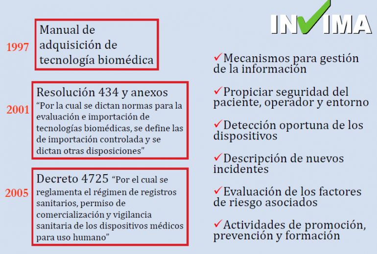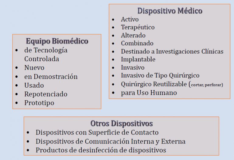 ¿Qué son los dispositivos médicos?Son cualquier instrumento, aparato, artefacto, equipo biomédico u otro artículo similar o relacionado, utilizado solo o en combinación, incluyendo sus componentes, partes, accesorios y programas informáticos que intervengan en su correcta aplicación, destinado por el fabricante para el uso en seres humanos en los siguientes casos: - Diagnóstico, prevención, supervisión o alivio de una enfermedad (por ejemplo, un ecocardiógrafo, endoscopio, laringoscopio, etc.).