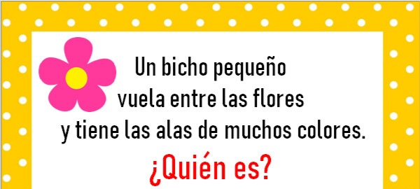 ¡¡ Es hora de adivinar !! Online version Piensa, imagina y adivina la palabra mágica. Buena suerte!! by Andrea Casa 1 Antes fue una oruga y después es una?